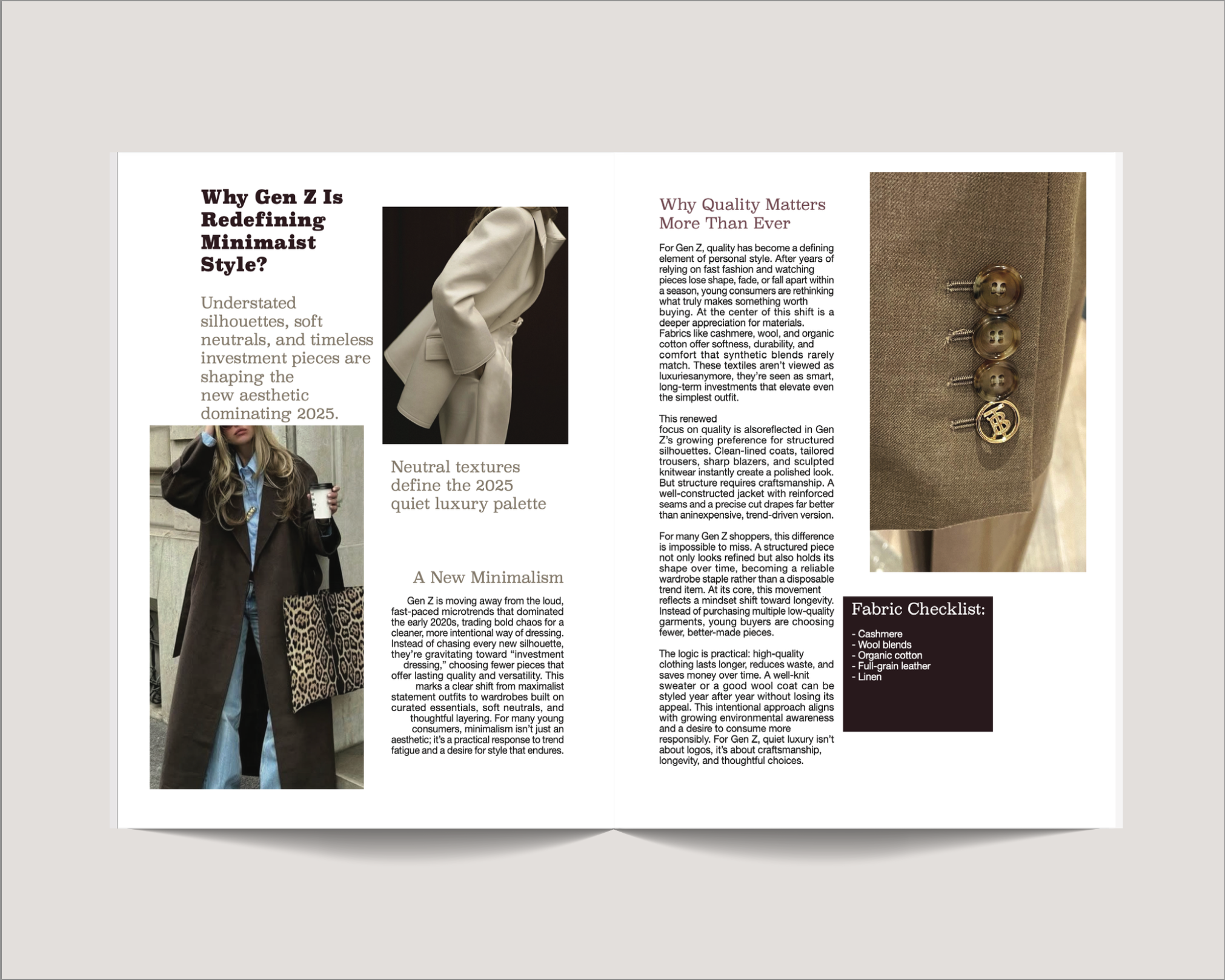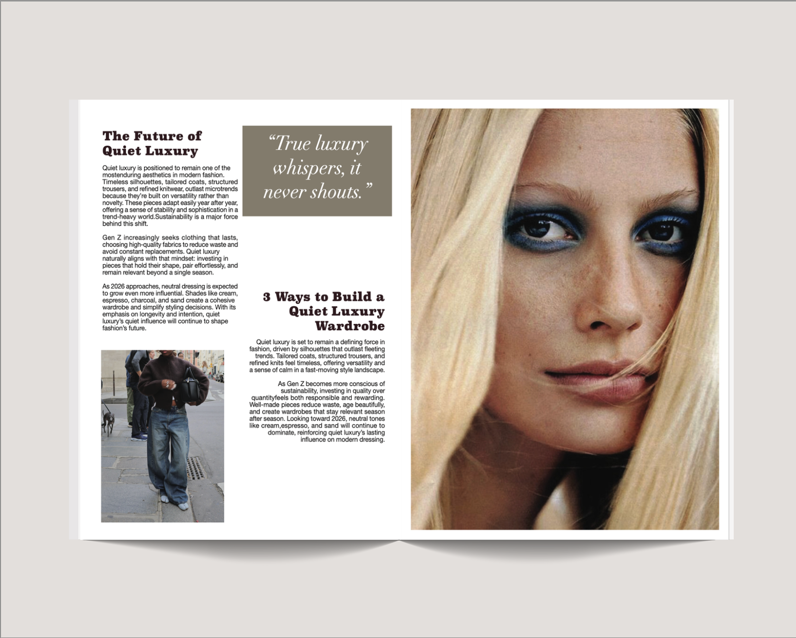 For this editorial assignment we had to come up with a magazine of our choosing out of a list of topics. I decided on a fashion magazine, I would love to go into something that has to do with fashion and graphic design, so I felt as though this would be a perfect fit for me.